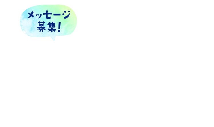 ※本プロジェクトに投稿いただいたメッセージの中から選出したものを特設ページで紹介します。本プロジェクトに参加した時点で、投稿したメッセージおよびその他情報を掲載することに同意したものと判断させていただきます。掲載時には個別に通知することはありませんので、予めご了承ください。